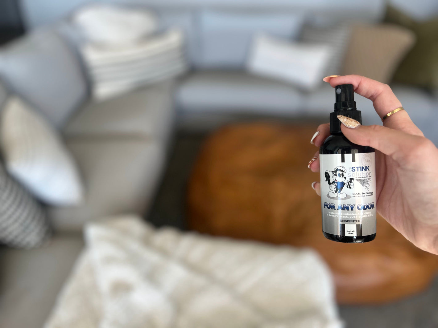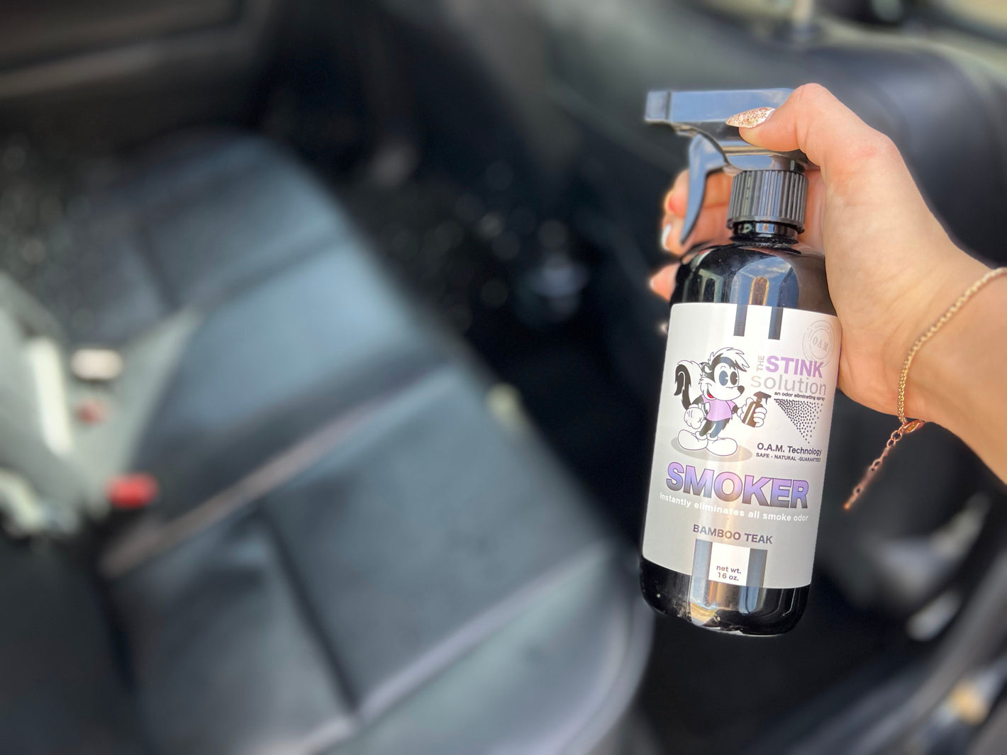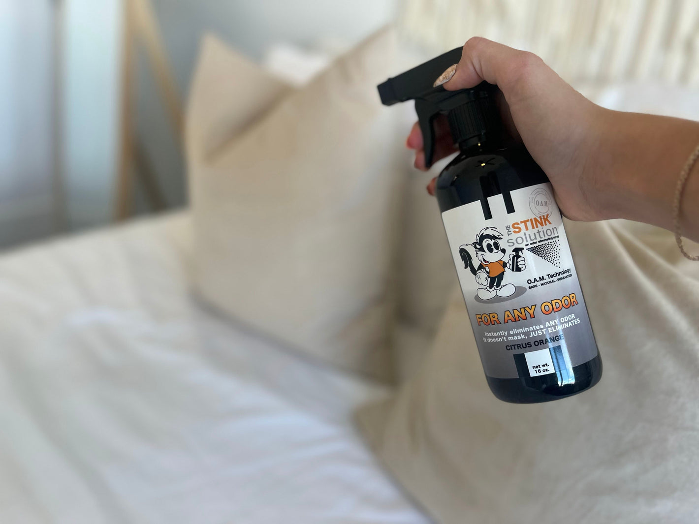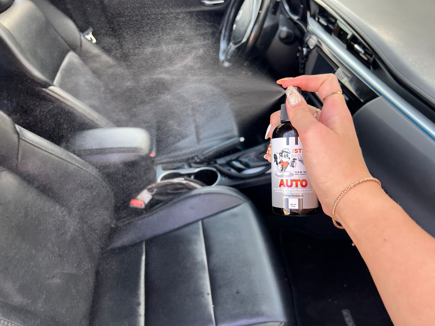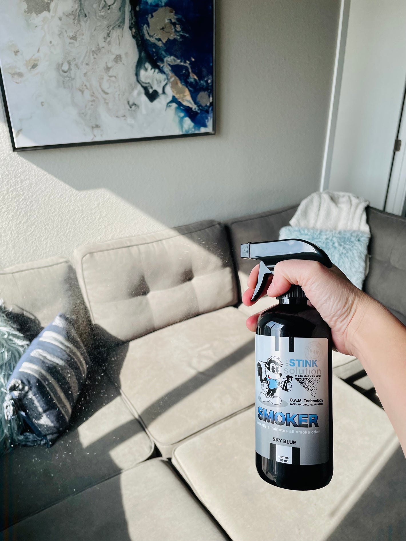 2. Grab a bottle of The Stink Solution and spray the h*ll out of it. The goal is to put The Stink Solution to the test to see how well it will get rid of the funky odor!