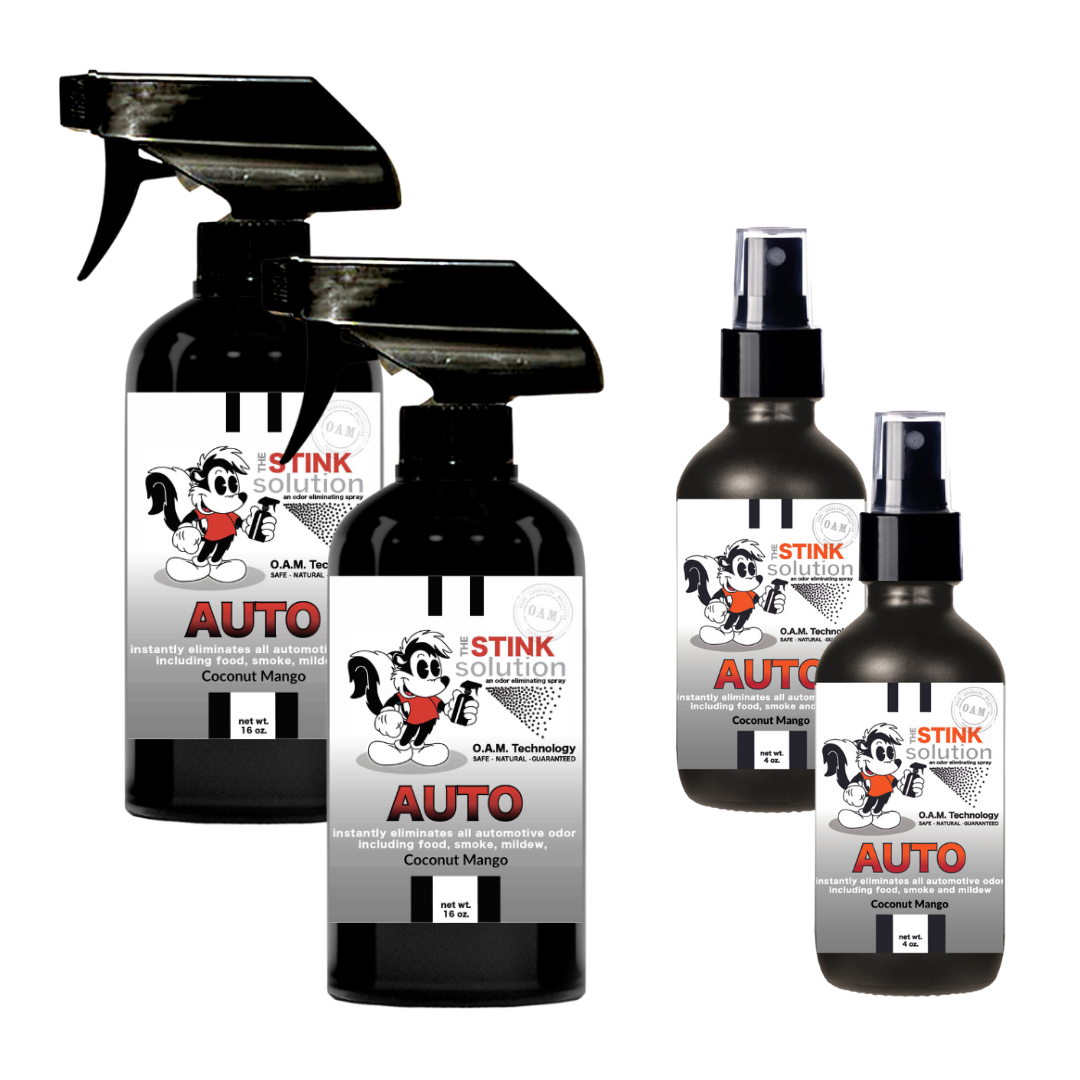 The Stink Solution Auto Odor Eliminator is your go-to car deodorizer for eliminating stubborn smells in any vehicle—cars, trucks, SUVs, you name it. Whether you're dealing with food spills, pet odors, diaper disasters, or mystery funk from the gym bag in the backseat, this car odor eliminator doesn't mask the smell—it gets rid of it for good. It’s the ultimate car freshener spray powered by science.