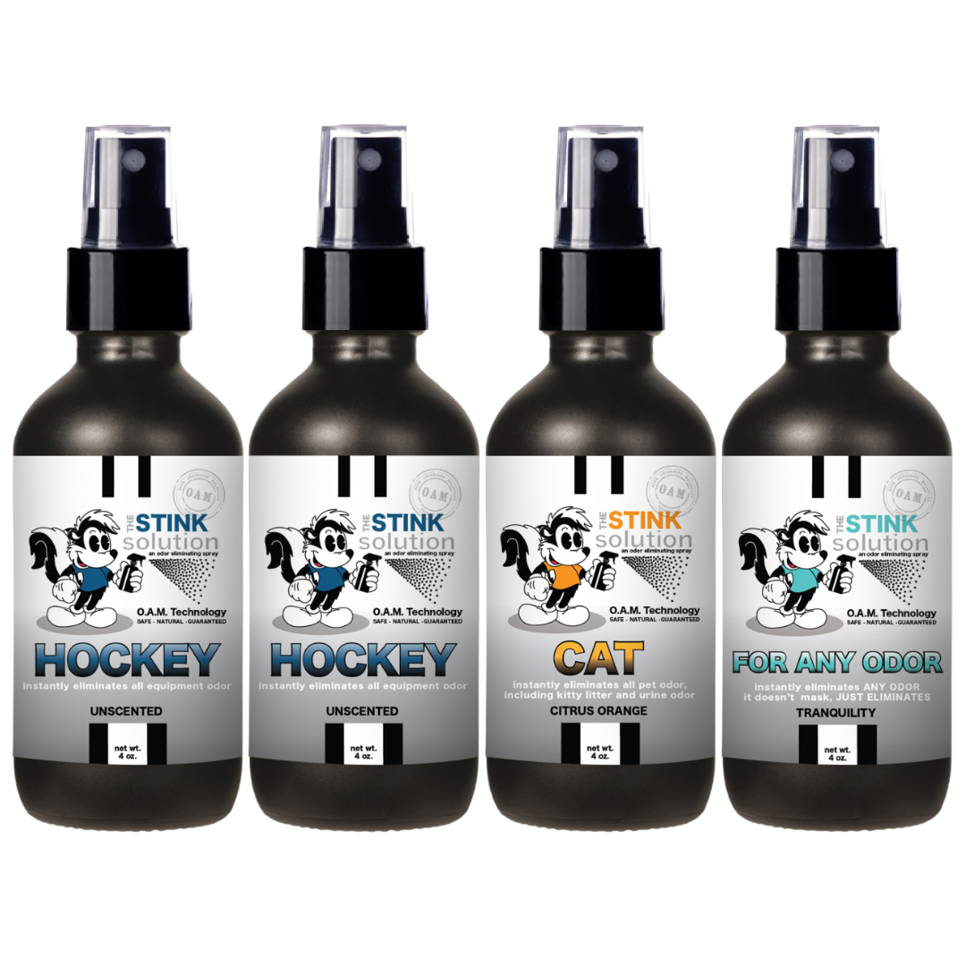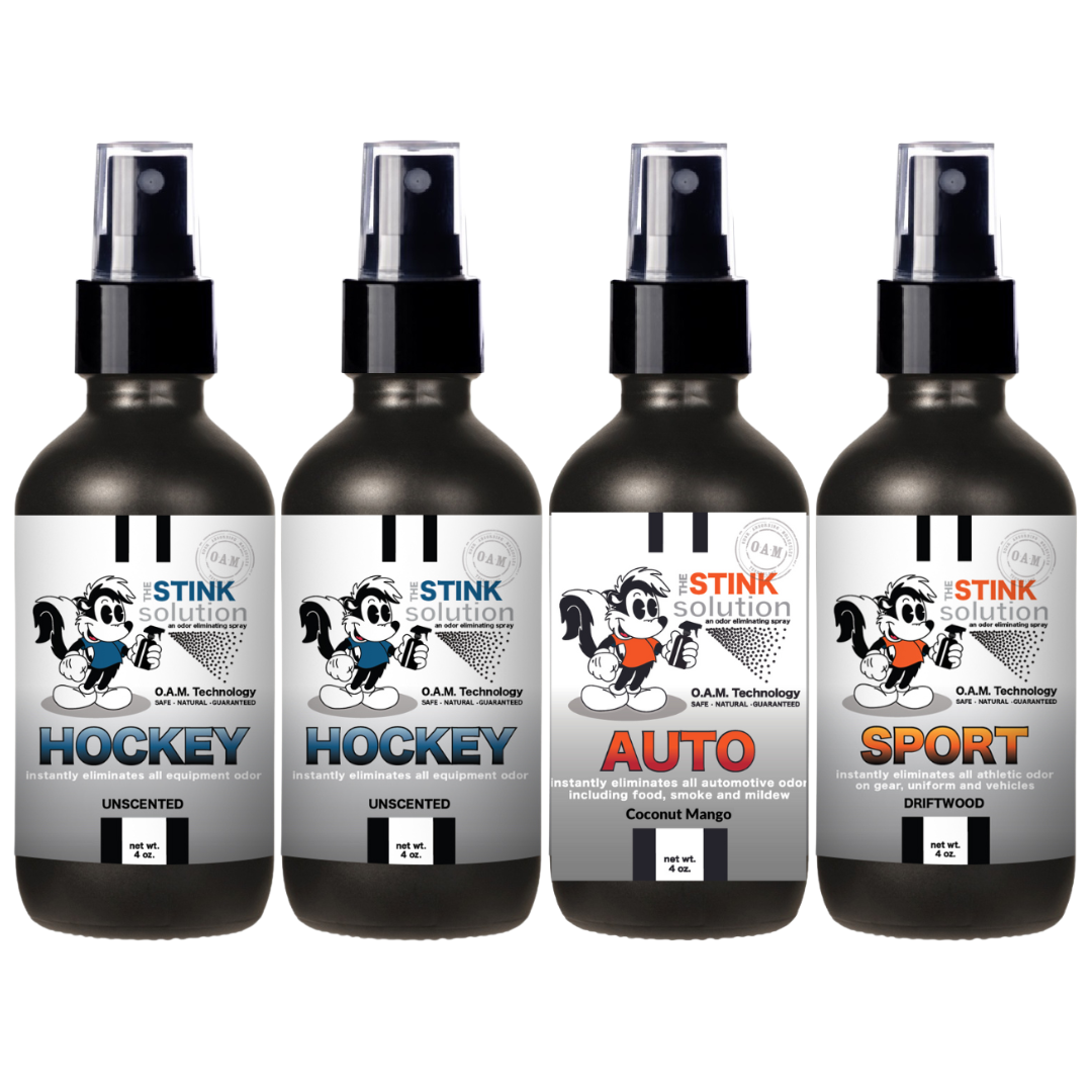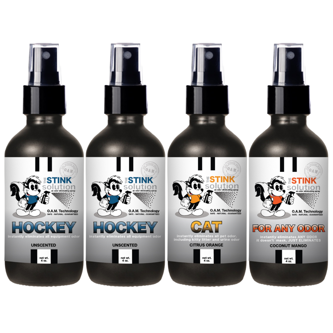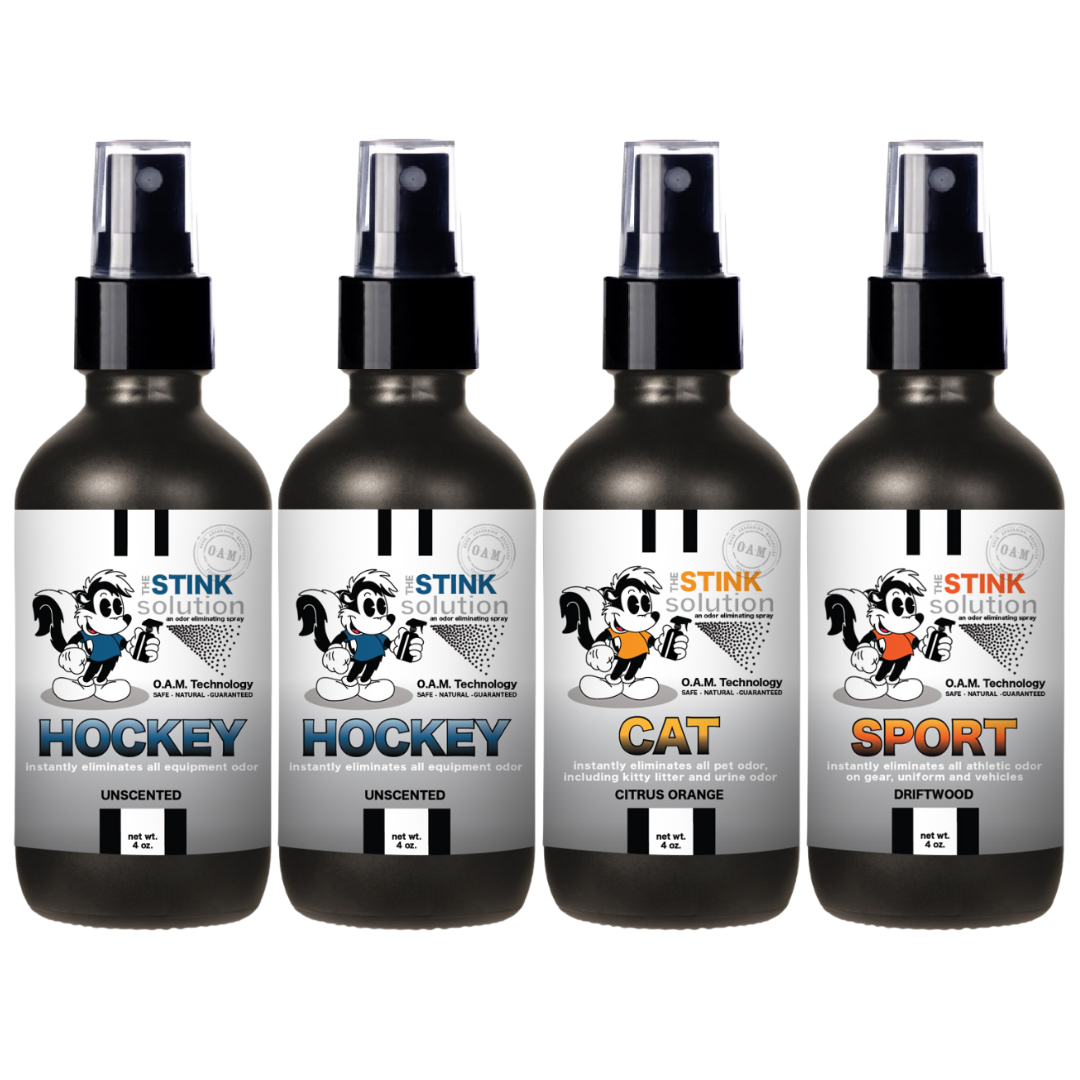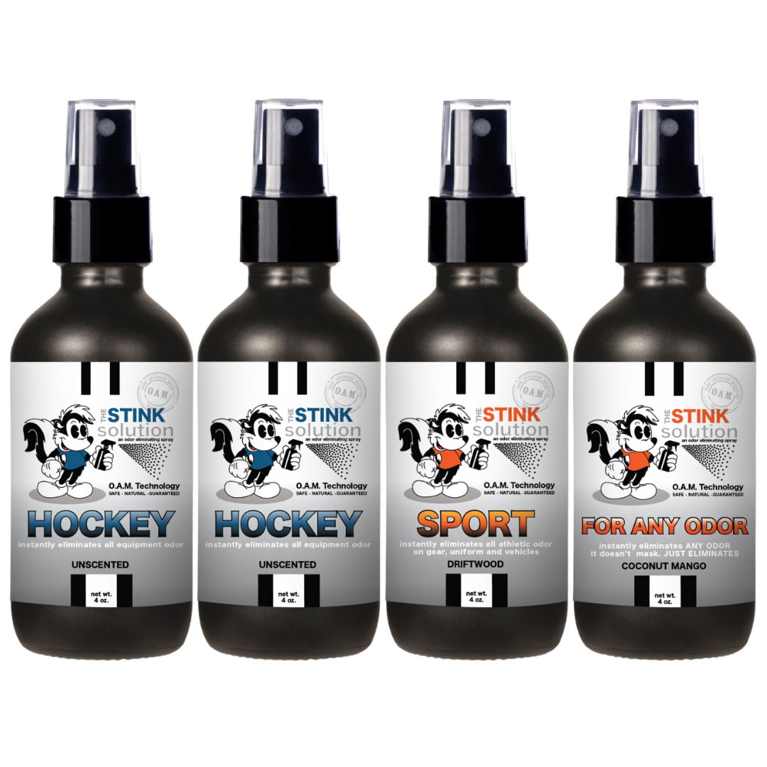 Hockey gear stinks. We get it. That’s why The Stink Solution Hockey Odor Eliminator was created—to destroy the intense smells that come from sweat-drenched gloves, skates, pads, and everything stuffed into that hockey bag. This powerful, non-toxic hockey deodorizer is specifically designed to target odors from gear, locker rooms, and vehicles, leaving them fresh without fake cover-up scents. It’s the ultimate Hockey Odor Eliminator Spray trusted by hockey players, parents, and coaches.