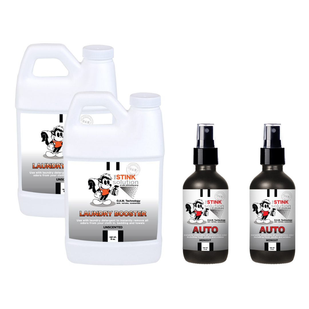 Super Sample Bundle - Two Unscented Mini Laundry Boosters + Two 4 oz Auto Odor Eliminator Sprays